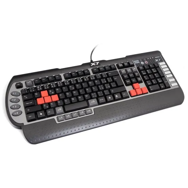 Klawiatura do gier A4tech G800V ma atrakcyjną wodoodporną konstrukcję. W rzeczywistości klawisze WSAD i strzałek są oznaczone kolorami (w zestawie znajdują się również części zamienne w standardowym czarnym kolorze) i mają antypoślizgową gumową powierzchnię dla maksymalnej kontroli nad grą.