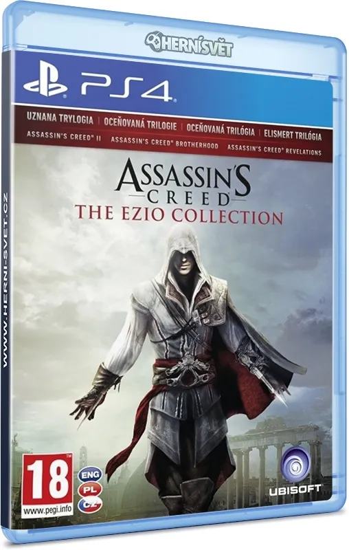 Twórz historię jako legendarny mistrz asasynów, Ezio Auditore da Firenze, w grze Assassin's Creed The Ezio Collection, zawierającej uwielbianą przez krytyków i fanów kampanię dla jednego gracza z gier Assassin's Creed II, Assassin's Creed Brotherhood i Assassin's Creed Revelations w ulepszonej grafice na konsolę Playstation 4.