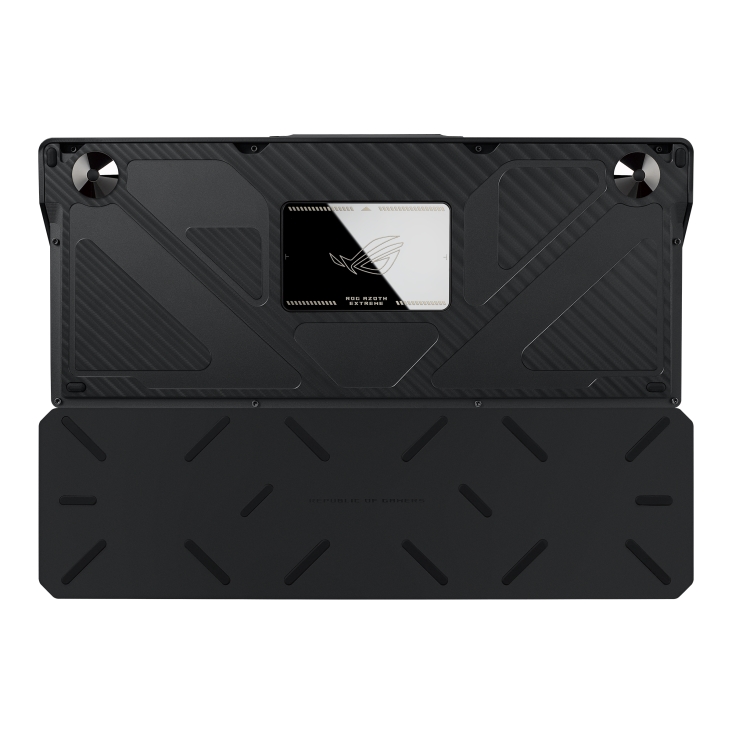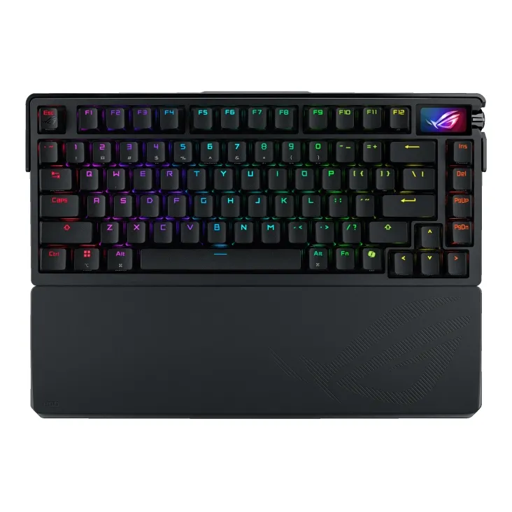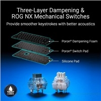 ROG Azoth Extreme to konfigurowalna 75% klawiatura do gier z aluminiową obudową i metalową ramą. Charakteryzuje się częstotliwością odpytywania 8000 Hz z ROG Polling Rate Booster i ponad 1600 godzinami pracy na baterii w trybie bezprzewodowym ROG SpeedNova 2,4 GHz. Ulepszony ekran dotykowy OLED i trzykierunkowy pokrętło umożliwiają monitorowanie systemu i szybką regulację. Płytka pozycjonująca z włókna węglowego zapewnia wyraźny dźwięk podczas pisania, podczas gdy trzy warstwy tłumiące absorbują wibracje. Regulowany uchwyt uszczelniający z przełącznikiem piórkowym oferuje dwie opcje pisania.