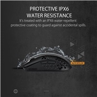Lekka przewodowa mysz gamingowa z sensorem 16 000 dpi, sześcioma programowalnymi przyciskami, ultralekką konstrukcją Air Shell, wodoodpornością IPX6, ochroną antybakteryjną ASUS, kablem TUF Gaming Paracord i stopkami z czystego teflonu.