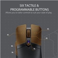 Lekka mysz gamingowa dla prawo- i leworęcznych graczy z dwoma trybami łączności bezprzewodowej, sensorem 12 000 dpi, sześcioma programowalnymi przyciskami, górną pokrywą PBT z ASUS Antibacterial Guard, w 100% teflonowymi stopkami i oprogramowaniem Armoury Crate.