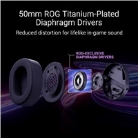 50 mm przetworniki ROG z membraną tytanową: Ekskluzywne przetworniki ROG zapewniają bogaty, szczegółowy dźwięk z szeroką odpowiedzią częstotliwościową 20 Hz–20 kHz