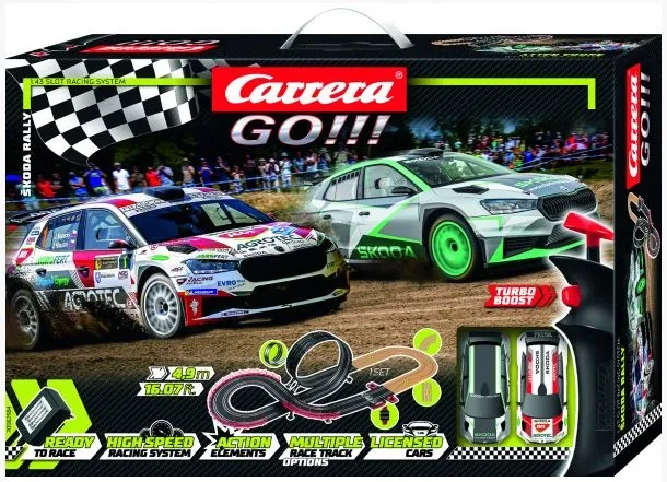 Autodrom Carrera GO - Škoda Rally. z długością 4,9 m i realistycznymi autkami Škoda FABIA RS 2 oferuje zabawę pełną adrenaliny! Tor można w każdym momencie przebudować według własnej wyobraźni i stworzyć nowe, ekscytujące trasy. Carrera GO!!! jest idealna dla dzieci i dorosłych, którzy kochają prędkość i kreatywność!