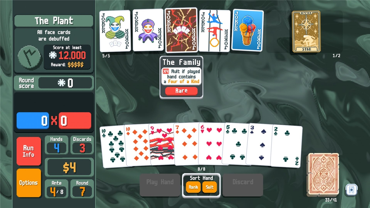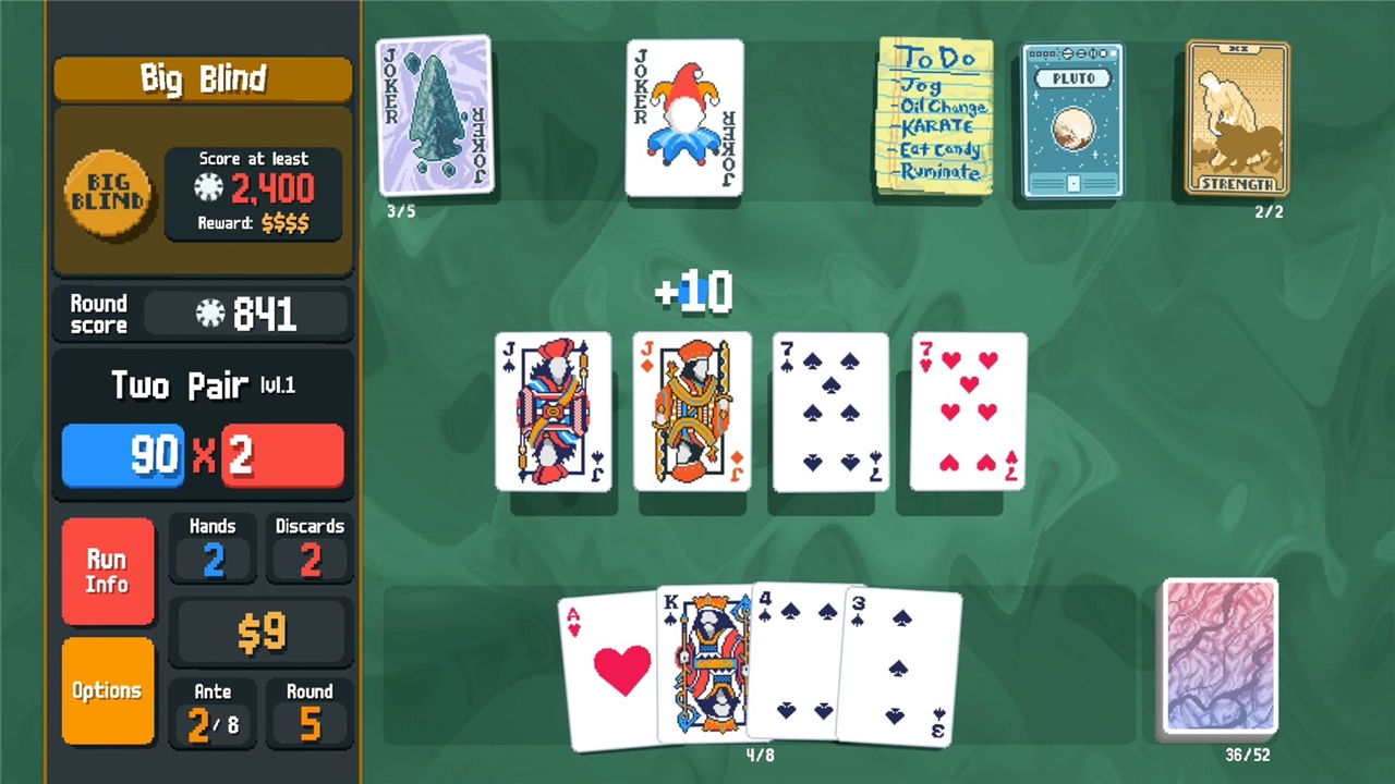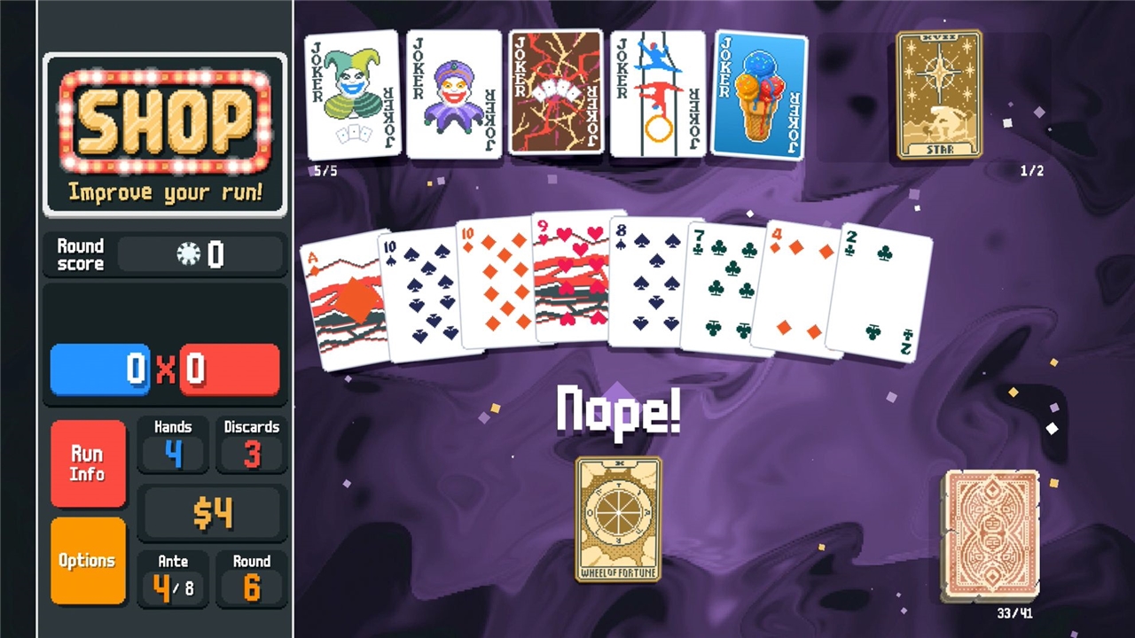 Wyciągaj układy pokerowe, łącz je z unikalnymi kartami jokerów i wykorzystuj ich różnorodne efekty synergiczne. Zbieraj potrzebne żetony, wygrywaj bitwy z podstępnymi żaluzjami i stopniowo odkrywaj ukryte układy pokerowe i inne talie. Będziesz potrzebować każdej możliwej przewagi, aby dotrzeć do ostatniego bossa w ciemno, pomyślnie wypełnić ostatnią ante i odnieść zwycięstwo!