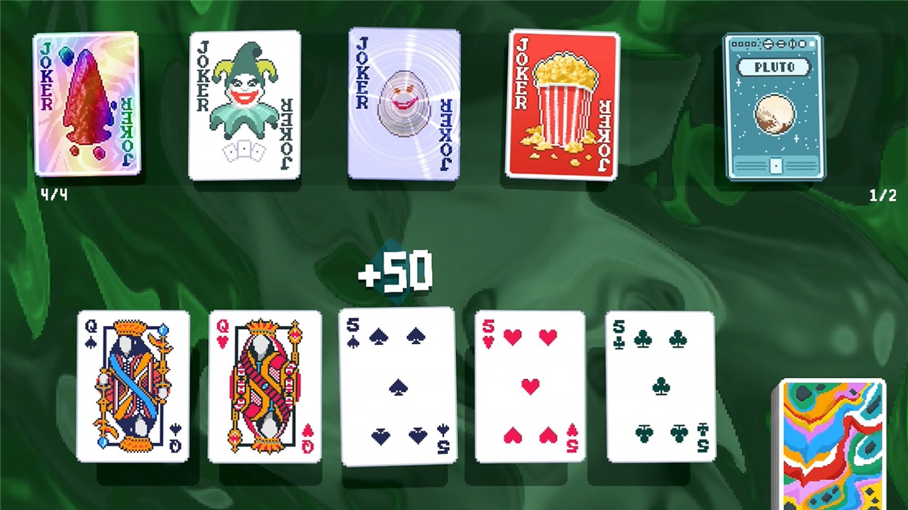 Umiejętnie korzystaj z różnych narzędzi o unikalnych właściwościach i zróżnicowanych efektach w każdym przebiegu, od rzeczywistych talii kart do gry, przez jokery, karty tarota i karty planet, po karty widmowe lub bony. Następnie użyj tych wszechstronnych instrumentów, aby wyzwolić szaleństwo niespotykanych kombinacji, wystrzelić swoje pokerowe ręce na niespodziewane wyżyny i stworzyć elektryzujące synergie, które pompują krew.