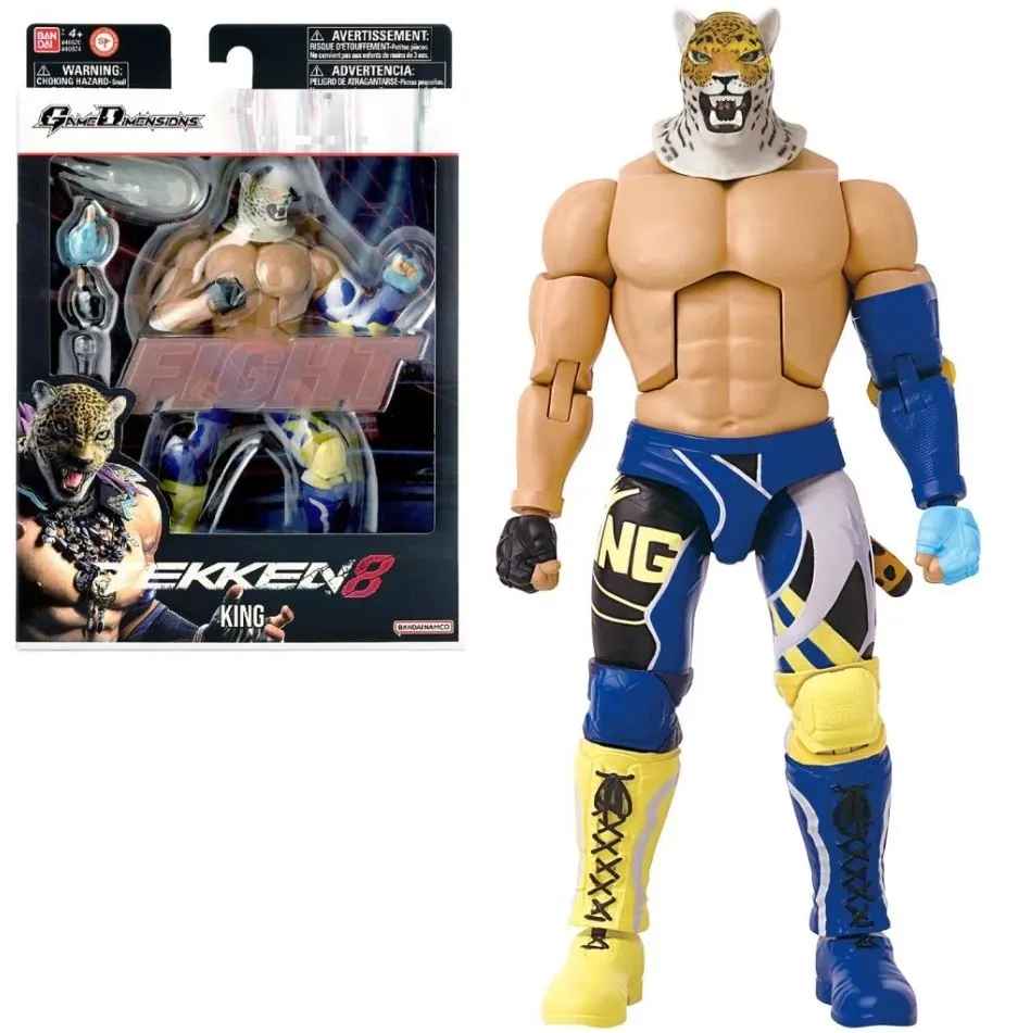 Do każdej postaci z tej serii dołączono zabawne akcesoria. King ma dodatkowo parę wymiennych rąk, biały energetyczny efekt oraz stojak z napisem „FIGHT”.