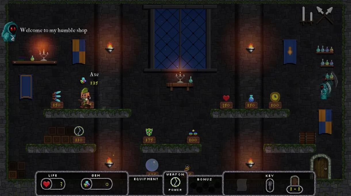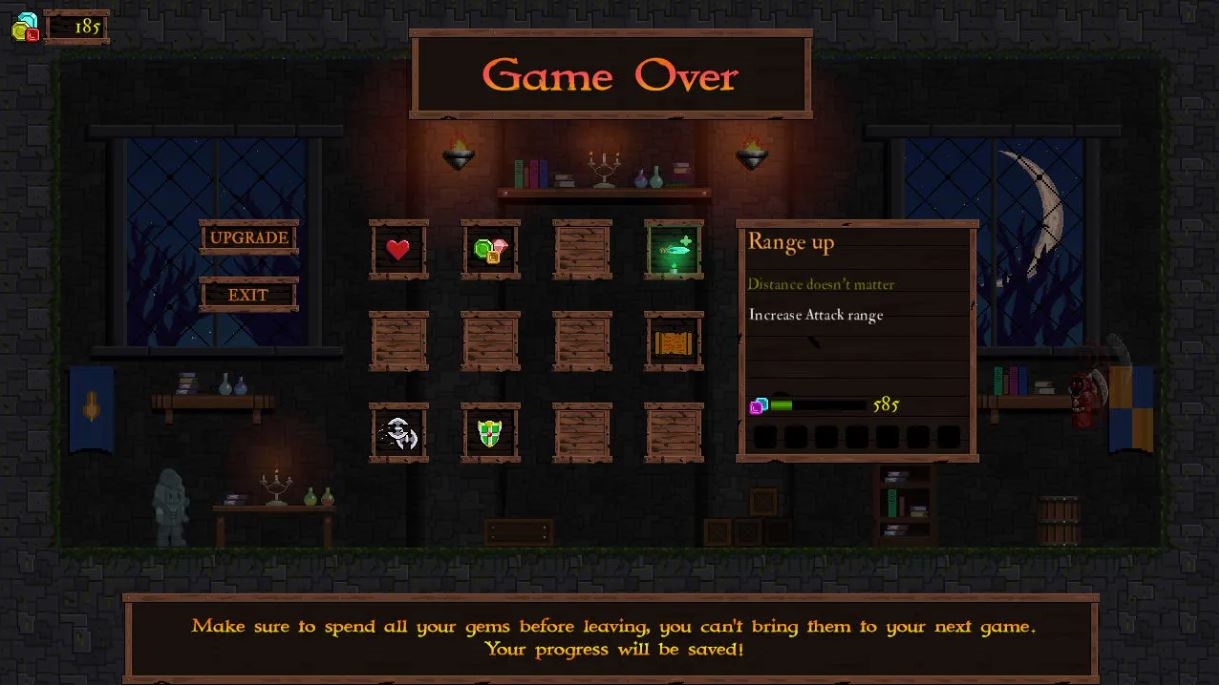 Dostępnych jest ponad 100 poziomów, które zostały stworzone ręcznie i losowo wybrane dla każdej rozgrywki. Gra posiada stały system ulepszeń. Różne układy są losowo wybierane dla każdego poziomu za każdym razem, gdy grasz. Dzięki zebranymklejnotom będziesz mógł ulepszyćswoją postać na ekranie Game Over. Ulepszenia te są trwałe i pomogą ci w przyszłych grach.