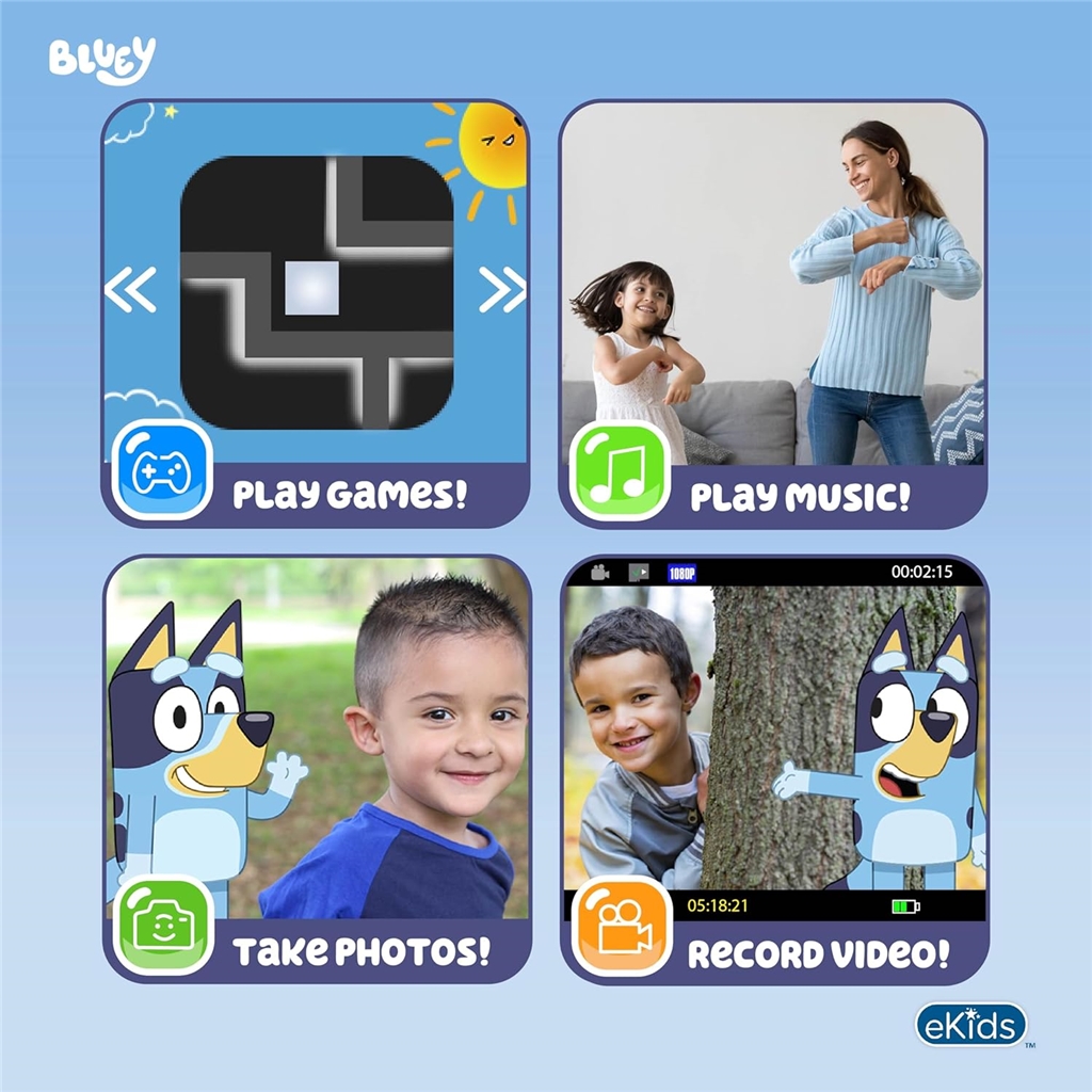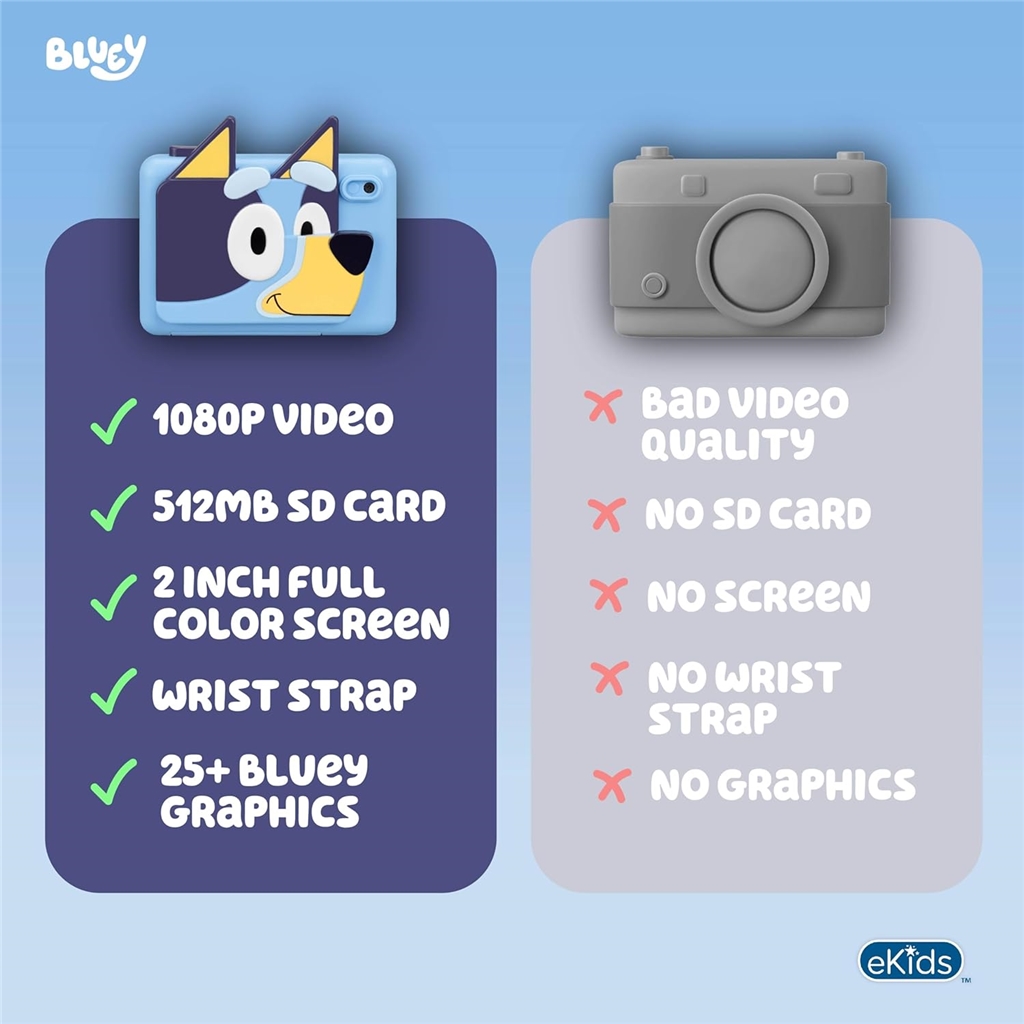 Spraw swoim dzieciom radość tym kolorowym i zabawnym aparatem z motywem ulubionego bohatera serialu Bluey. Ten aparat został zaprojektowany specjalnie dla dzieci, aby mogły łatwo uchwycać wszystkie swoje ulubione chwile.