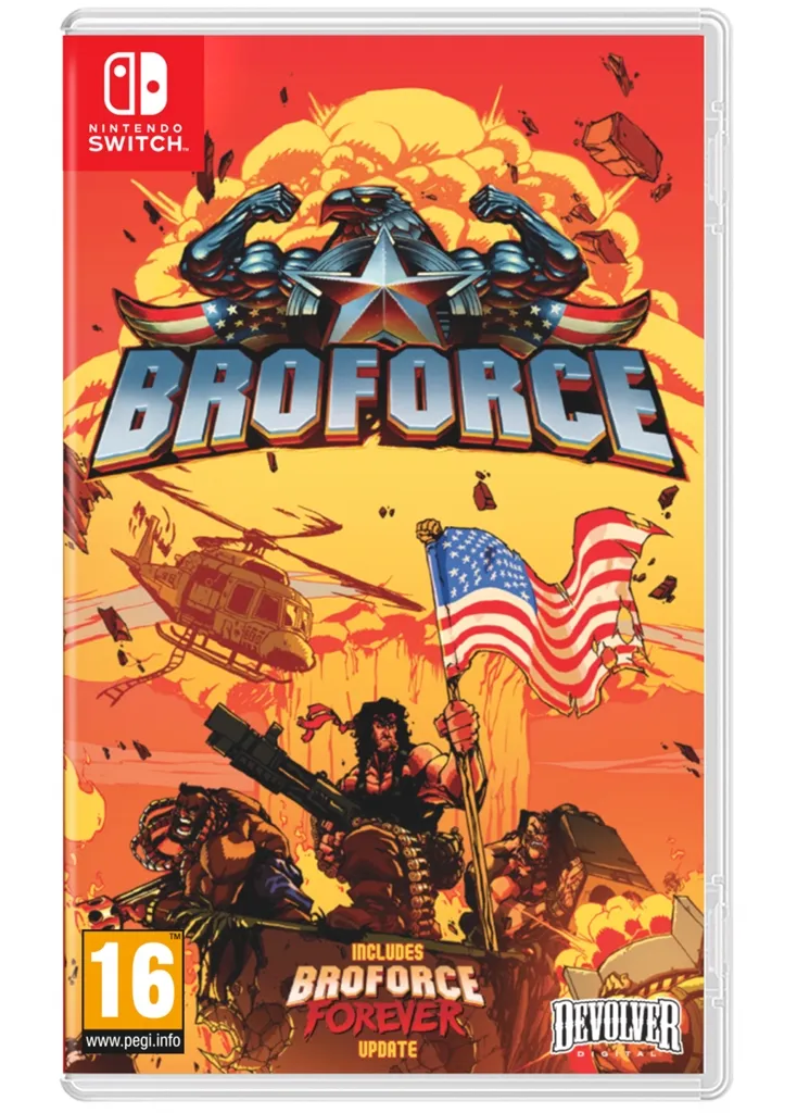 Kiedy zło zagraża światu, wzywa Broforce - niedofinansowaną i zbyt potężną organizację paramilitarną. Przygotuj się na to, że nawet czterech graczy będzie biegać i strzelać jak dziesiątki różnych braci i eliminować wrogie siły terrorystyczne, które zagrażają naszemu stylowi życia. Uwolnij szok i strach dzięki dziesiątkom braci, z których każdy ma własną unikalną broń i specjalne ataki mające na celu zniszczenie wolności na całym świecie. Walcz z terroryzmem z maksymalnie czterema graczami w trybie kooperacji lub zerwij więzi z przyjaciółmi i zmierz się ze sobą w kilku bombastycznych trybach rywalizacji. Zniszczalny teren otwiera szereg opcji strategicznych, a mnogość eksplodujących czerwonych beczek sprawiedliwości może dosłownie wyrównać szanse jednym strzałem.