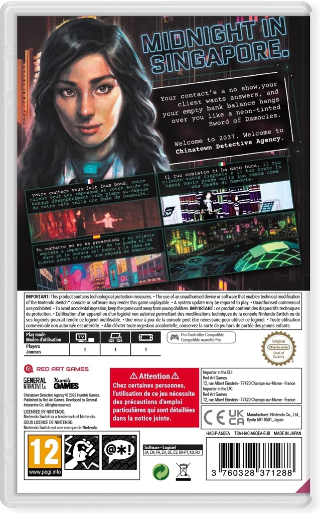 Podróżuj po świecie i rozwiązuj niebezpieczne sprawy dzięki prawdziwym badaniom w oświetlonym neonami świecie na skraju upadku w 2037 r. Północ w Singapurze. Twoje kontakty się nie pojawiają, twój klient chce odpowiedzi, a twoje puste saldo bankowe wisi nad tobą jak neonowy miecz Damoklesa. Witamy w roku 2037. Witamy w biurze detektywistycznym Chinatown. Świat jest w stanie wahania, ponieważ globalna gospodarka zbliża się do dna trwającego od dziesięcioleci upadku. Singapur jest ostatnią ostoją porządku, ale nawet tutaj rząd zmaga się z chaosem. To właśnie tutaj wkraczasz. Jesteś Amirą Darmą, niegdyś wschodzącą gwiazdą INTERPOLU, teraz świeżo upieczonym prywatnym detektywem w sercu Chinatown, a twój pierwszy klient właśnie przechodzi przez twoje drzwi...