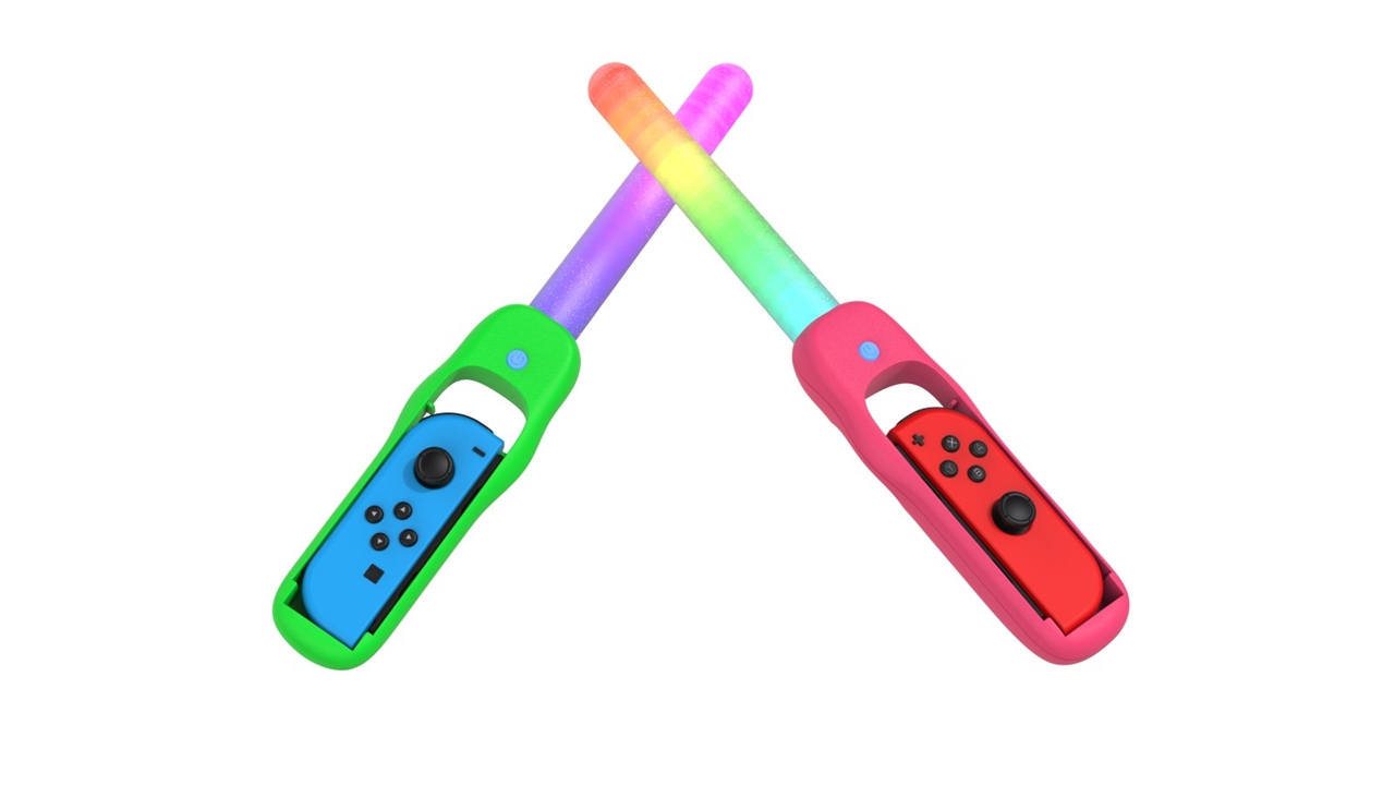 Zestaw Dance 'N' Play zawiera 2x czułe na dźwięk pałeczki świetlne LED z różowymi i zielonymi uchwytami oraz paskami na nadgarstki. Wrażliwe na dźwięk pałeczki świetlne LED z wielokolorowym efektem tęczowego podświetlenia będą działać, pulsować, świecić i tańczyć do każdego dźwięku. Niezależnie od tego, czy jest to muzyka, czy dźwięki z gry, zestaw Dance 'N' Play rozjaśni Twój pokój.