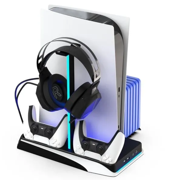 PS5 DLX+ LED wielofunkcyjna stacja ładowania, chłodzenia i przechowywania z podświetleniem LED.