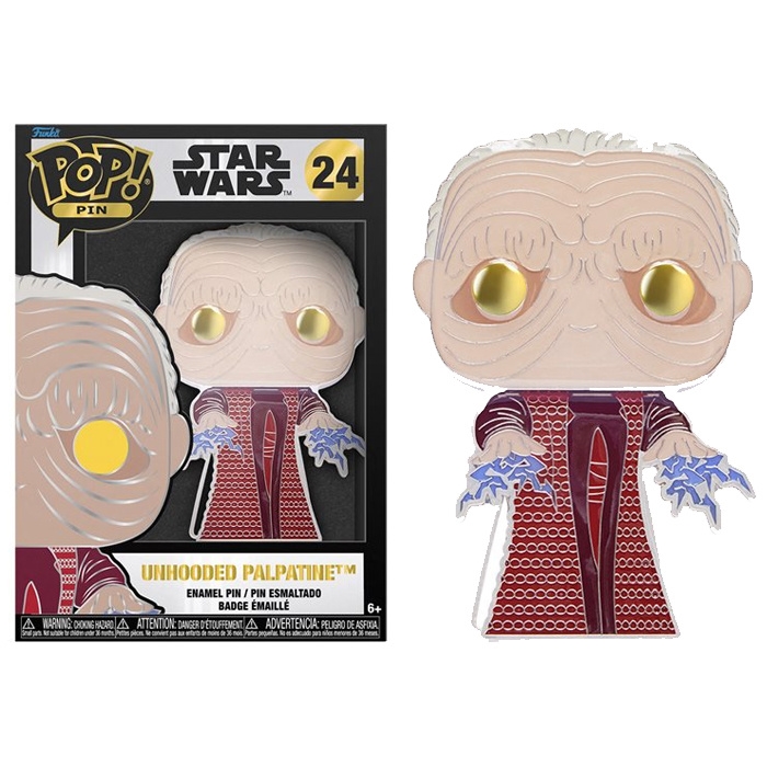 Przypinka ma około 10 cm wysokości, tak jak Funko Pop, na którym jest oparta. Odznaka posiada nie tylko standardowy grzbiet do przypięcia, ale także podstawkę pod pinezkę "Funko Crown", która pozwala jej stać!