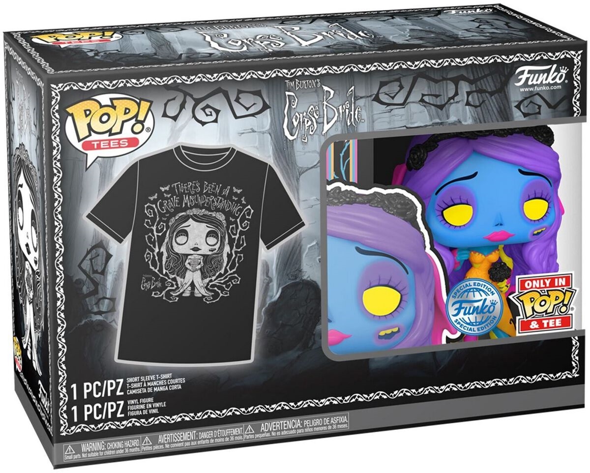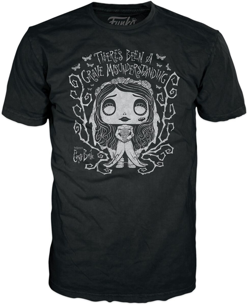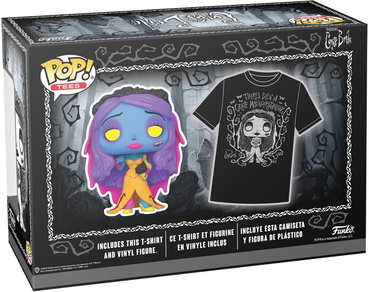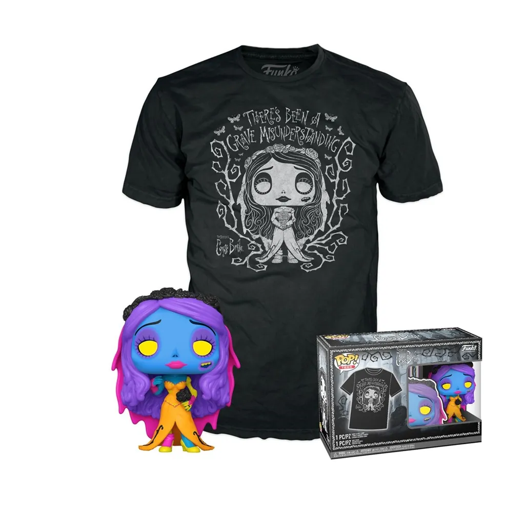 Opakowanie zawiera również męską koszulkę w rozmiarze L! Na przodzie tej koszulki z krótkim rękawem znajduje się biały motyw Emily w stylu Pop! otoczony cierniami i ćmami.