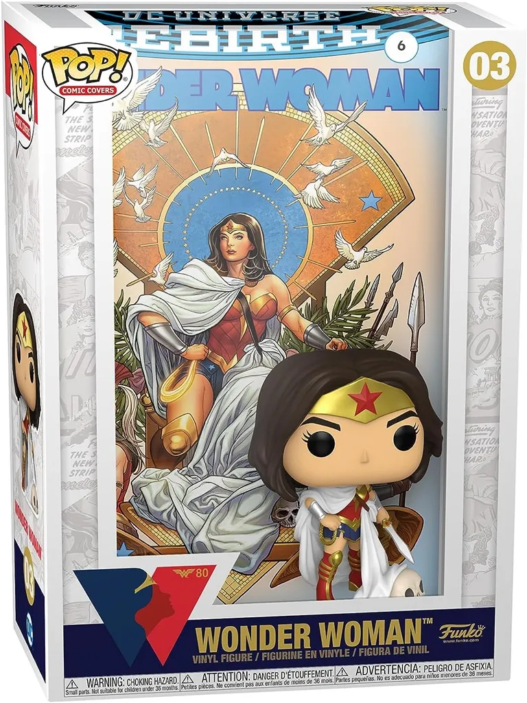 Ten kolekcjonerski przedmiot przedstawia okładkę komiksu Wonder Woman Rebirth #6, a wszystko to zapakowane w ochronny pokrowiec, który można powiesić na ścianie!