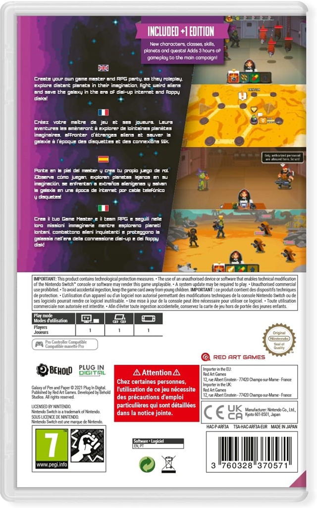 Galaxy of Pen & Paper to turowa gra RPG, która przenosi gry papierowe z dzieciństwa w kosmos. Akcja rozgrywa się w 1999 roku, a grupa przyjaciół przeciwstawia się niebezpieczeństwom nowej, dziwnej galaktyki, uzbrojona w kości i unikalne zestawy umiejętności. Gracz tworzy własnego Mistrza Gry i buduje drużynę, w której rozgrywa serię dziwnych i ekscytujących kampanii, zdobywając prestiż i odblokowując nowe umiejętności. Galaxy of Pen & Paper rozszerza koncepcje swojego poprzednika, Knights of Pen & Paper, wprowadzając większy wszechświat, większą różnorodność ras i nowe, pomysłowe środowiska science-fiction.