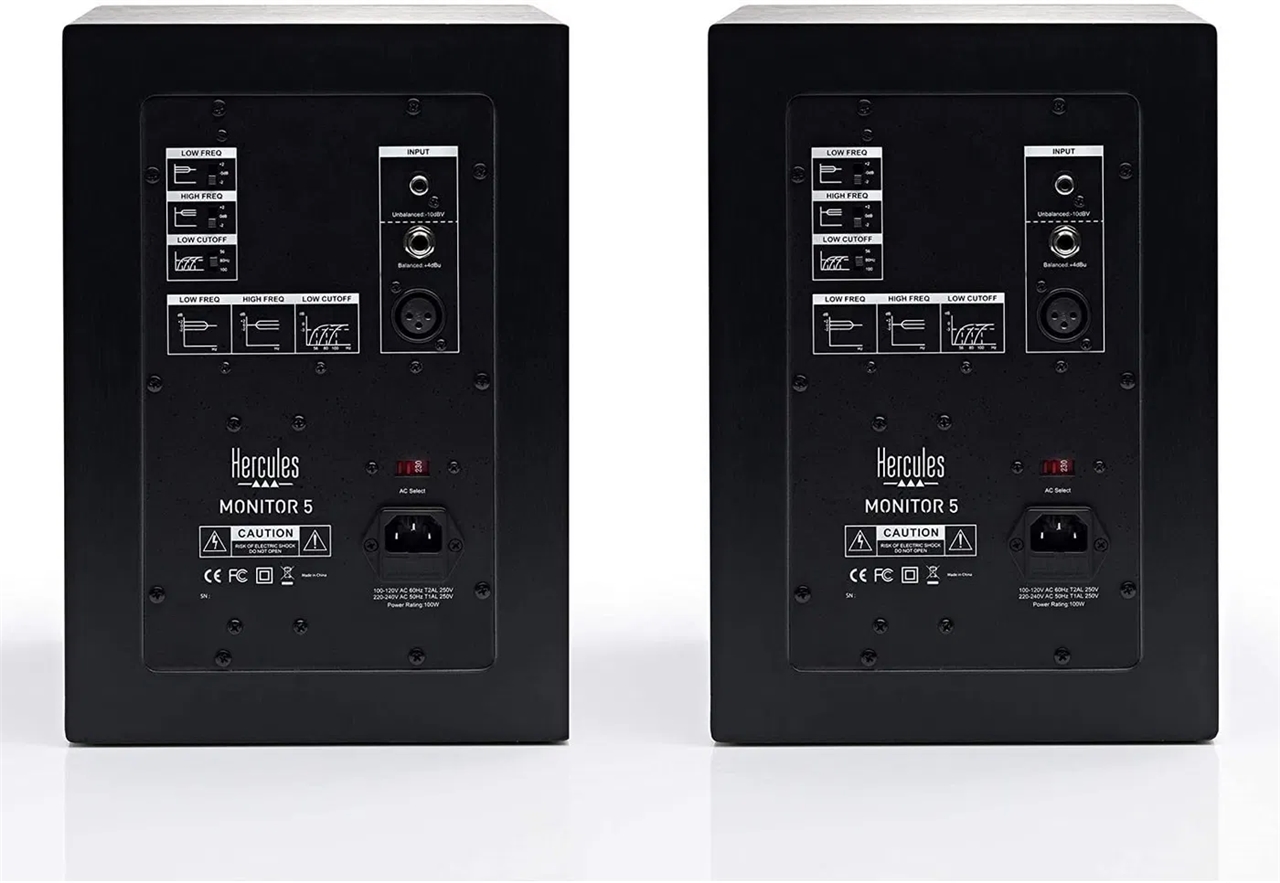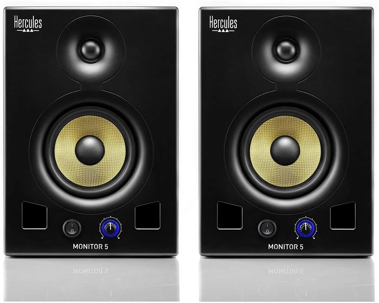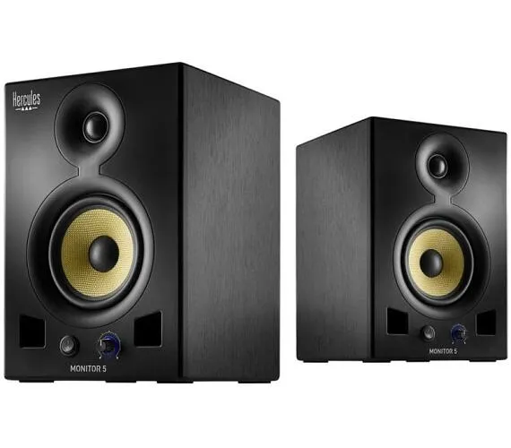 Hercules Monitor 5: para aktywnych głośników z dwoma wzmacniaczami (2 x 80 W), każdy wyposażony w 5-calowy/12,7-cm woofer.