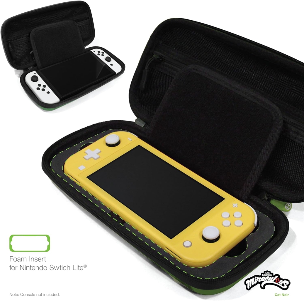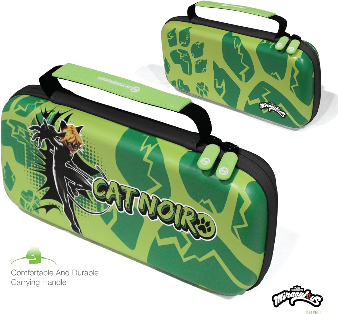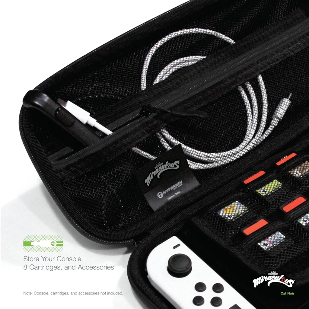 Bezpiecznie chroń swoją konsolę przed uderzeniami, zadrapaniami i upadkami dzięki oficjalnemu etui Miraculous Hard Shell Carry Case dla Nintendo Switch firmy Hyperkin. Jego wyjątkowo twarda obudowa zapewnia solidną ochronę. Posiada wewnętrzny schowek na gry i siatkową kieszeń, która jest idealna do przechowywania gier i akcesoriów. Zamek błyskawiczny na całej długości zapewnia bezpieczeństwo konsoli, gier i akcesoriów.