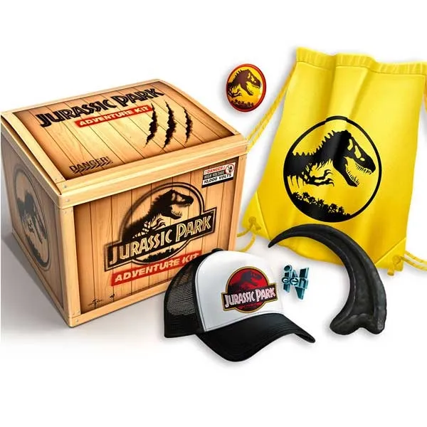 Zawartość opakowania: pazur welociraptora, kapelusz Jurassic Park, torba Jurassic Park, naszywka z logo Jurassic Park, naszywka z logo INGEN