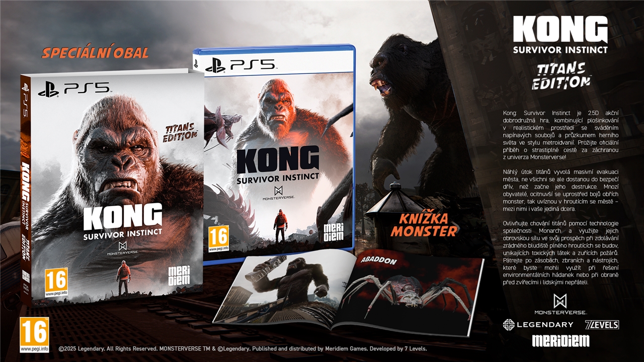 Kong: Survivor Instinct to gra przygodowa 2.5D, atrakcyjnie łącząca poruszanie się po platformach w realistycznym środowisku miejskim z emocjonującymi walkami i eksploracją połączonego świata w stylu metroidvanii. Przeżyjcie oficjalną opowieść o dramatycznej podróży w celu ratowania z dobrze znanego uniwersum Monsterverse!