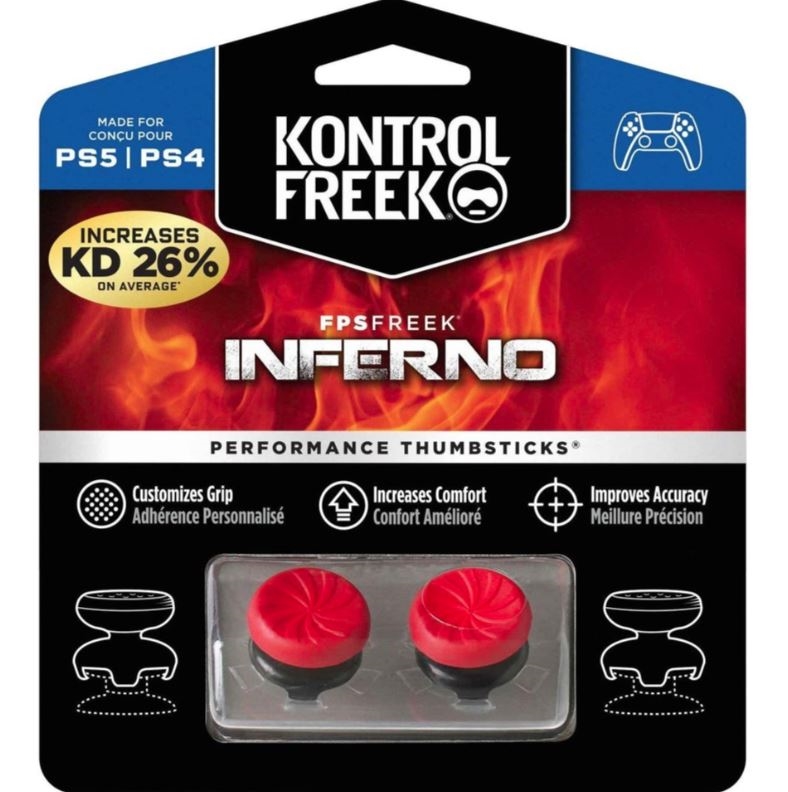 Inferno charakteryzuje się żywą czerwono-czarną kolorystyką i spiralnym wzorem rozsławionym przez FPS Freek Vortex. Wygodny wzór spirali dostosowuje się do nacisku, jaki na nią wywierasz, więc im ciężej grasz, tym ciężej Inferno pracuje, aby zapobiec ślizganiu się kciuków.