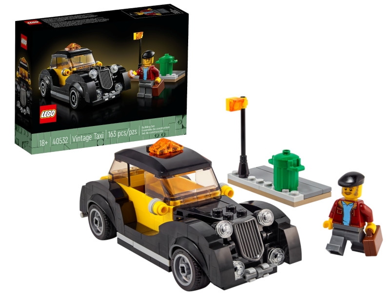Oprócz żółto-czarnego pojazdu, retro taksówka zawiera mały fragment ulicznej scenerii, z ukrytymi odchodami wewnątrz zielonego kosza, oraz jedną minifigurkę. Zestaw przeznaczony jest dla dorosłych i zawiera 163 elementy.