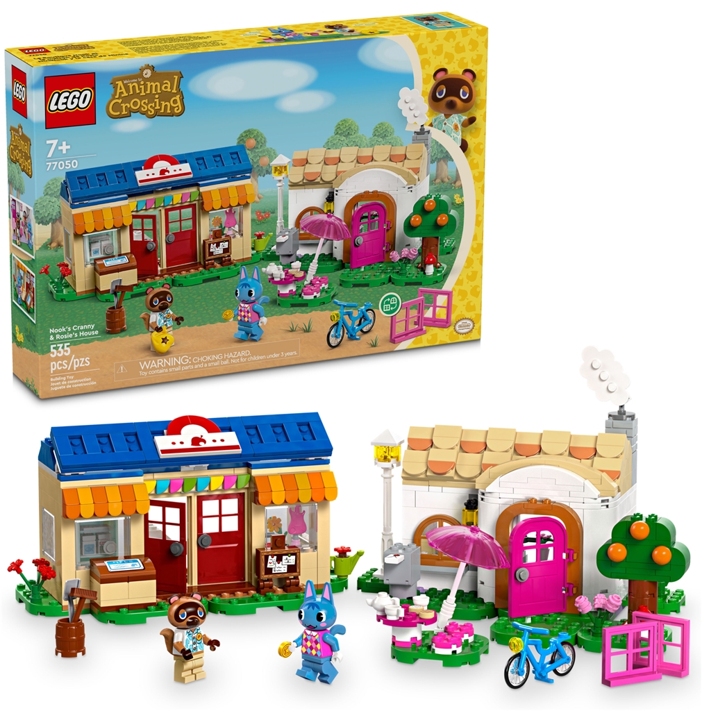 Ten zestaw to świetny prezent dla fanów gier z serii Animal Crossing. Znajdziesz tu wiele znajomych elementów i odkryjesz sklep, w którym szop Tom Nook sprzedaje przedmioty, takie jak niestandardowa karta z przepisami, nasiona kwiatów, przynęty na ryby i narzędzia w zamian za monety Bells. Następnie dzieci odwiedzą dom kotki Rosie z Tomem Nookiem, pełen słynnych przedmiotów.