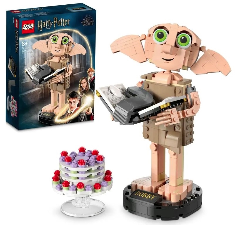 Uciesz fanów Harry'ego Pottera™ pierwszym modelem skrzata domowego Dobby'ego™ z zestawu LEGO®. Natychmiast rozpoznawalna figurka z klocków ma ruchomą głowę dla różnych wyrazów twarzy oraz ruchome ręce i palce, dzięki czemu Dobby może trzymać dołączone ikoniczne akcesoria. Dostępny jest szczegółowy model skarpety Harry'ego Pottera z dziennikiem Toma Riddle'a, który Harry użył do uwolnienia Dobby'ego, oraz „unoszący się” puddingowy tort ciotki Petunii, który przypomina klasyczne sceny.