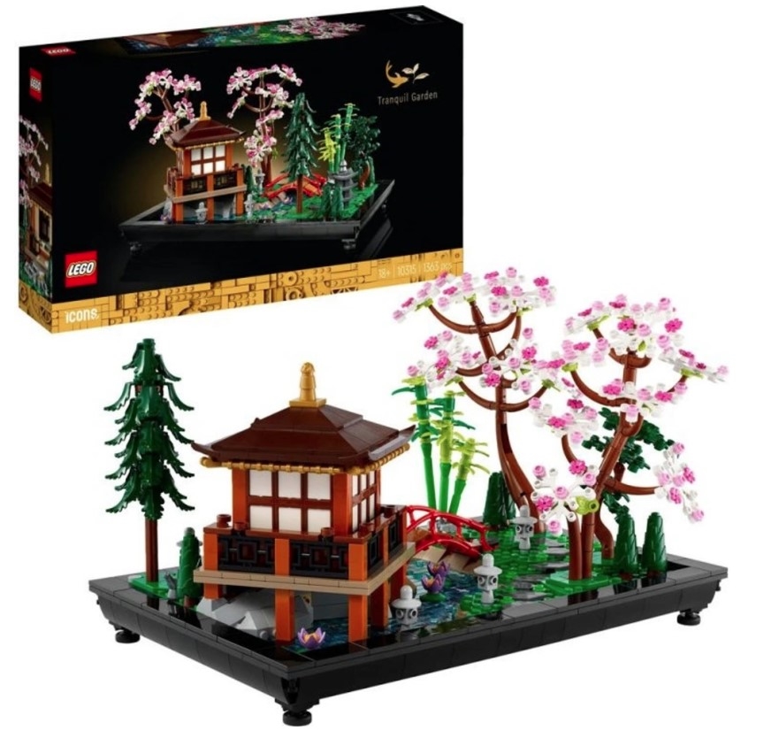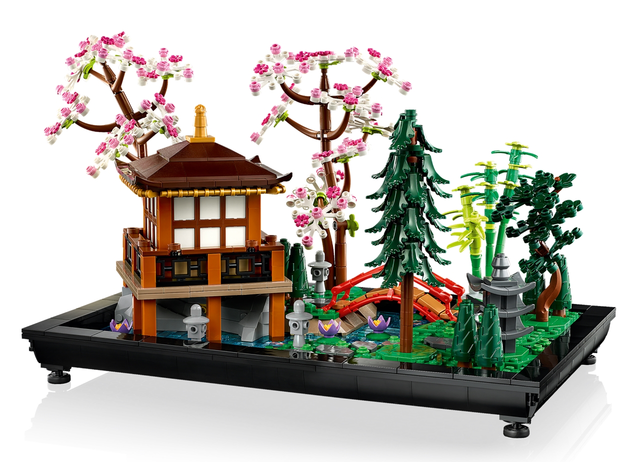 Ten model do zbudowania, inspirowany tradycyjnym japońskim ogrodem, zawiera łukowy most, strumień, karpie koi, kwiaty lotosu, drzewa, skały, kamienne latarnie i pawilon z detalicznie dopracowaną salą do ceremonii herbacianej.