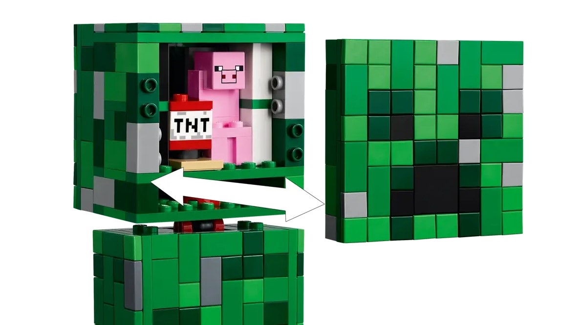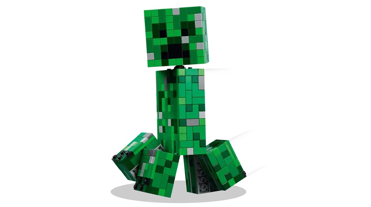 Ta składana replika Creepera ze świata gry Minecraft ma ponad 21 cm wysokości. Ma 4 ruchome nogi i głowę, która porusza się z boku na bok i pochyla się w górę i w dół. Przednią część głowy figurki LEGO Minecraft Creepera można odczepić i odsłonić wewnętrzną przestrzeń, która zawiera miniaturowego Creepera i elementy TNT. Dla jeszcze większej cyfrowej zabawy budowniczowie mogą przybliżać i obracać modele w 3D oraz śledzić postępy za pomocą zabawnej i intuicyjnej aplikacji LEGO Builder. Zestaw zawiera 665 elementów.