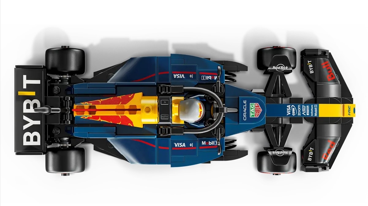 Minifigurka F1® – Ten zestaw pojazdu zawiera minifigurkę kierowcy F1 w stroju Red Bull z kaskiem ozdobionym skrzydłami, który można umieścić w kokpicie wyścigowego samochodu F1