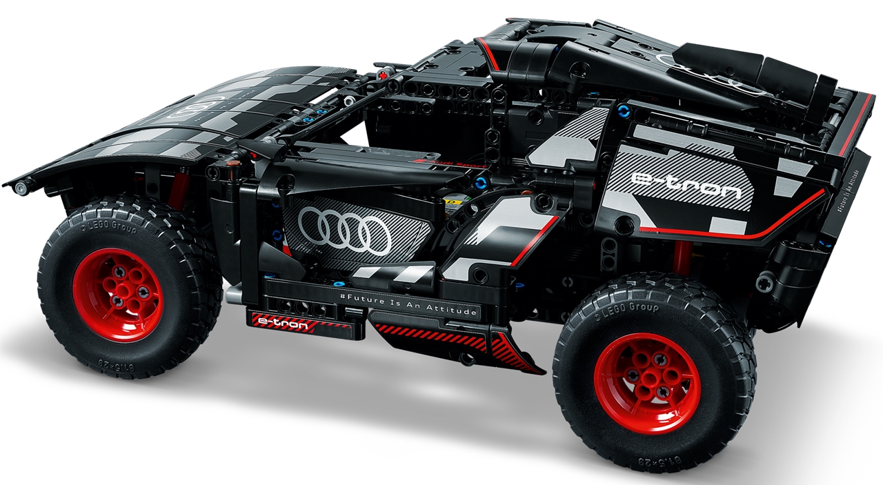 Podczas budowania odkryją, jak działa prawdziwy samochód elektryczny Audi zbudowany z myślą o trudnych pustynnych warunkach Rajdu Paryż-Dakar. Model zawiera realistyczne detale, takie jak niezależne amortyzatory na każdym z 4 kół. Posiada również nową część kierownicy Technic wykonaną specjalnie dla tego modelu, aby pasowała do rzeczywistego projektu kierownicy Audi.