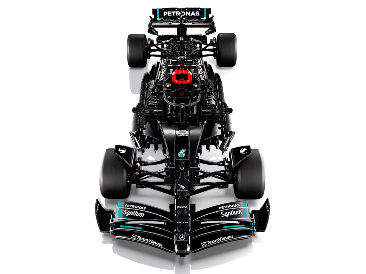 Mercedes-AMG F1 W14 E Performance z zestawu LEGO® Technic™ na sezon 2023. Ciesz się satysfakcjonującym budowaniem, montując szczegóły tego