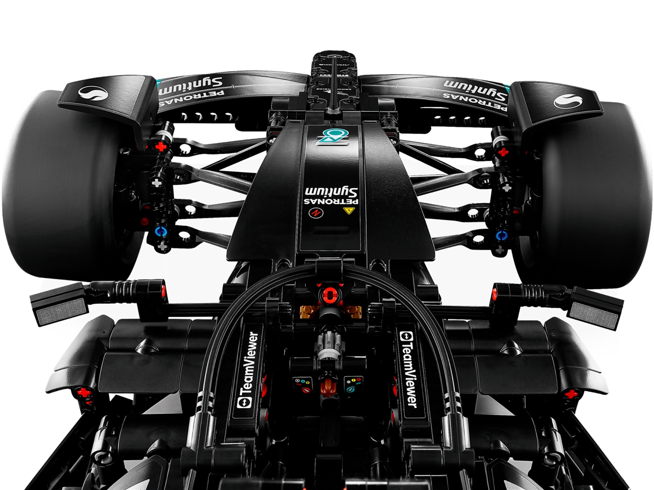 Autentyczne elementy i detale - W skład elementów wchodzi dyferencjał oraz sześciocylindrowy silnik z ruchomymi tłokami i otwierane skrzydło inspirowane systemem DRS prawdziwego samochodu.