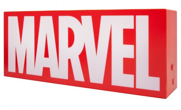 Dekoracyjna czerwona lampa stołowa z białym logo Marvel. Lampa oferuje 2 tryby świecenia z możliwością zawieszenia na ścianie.