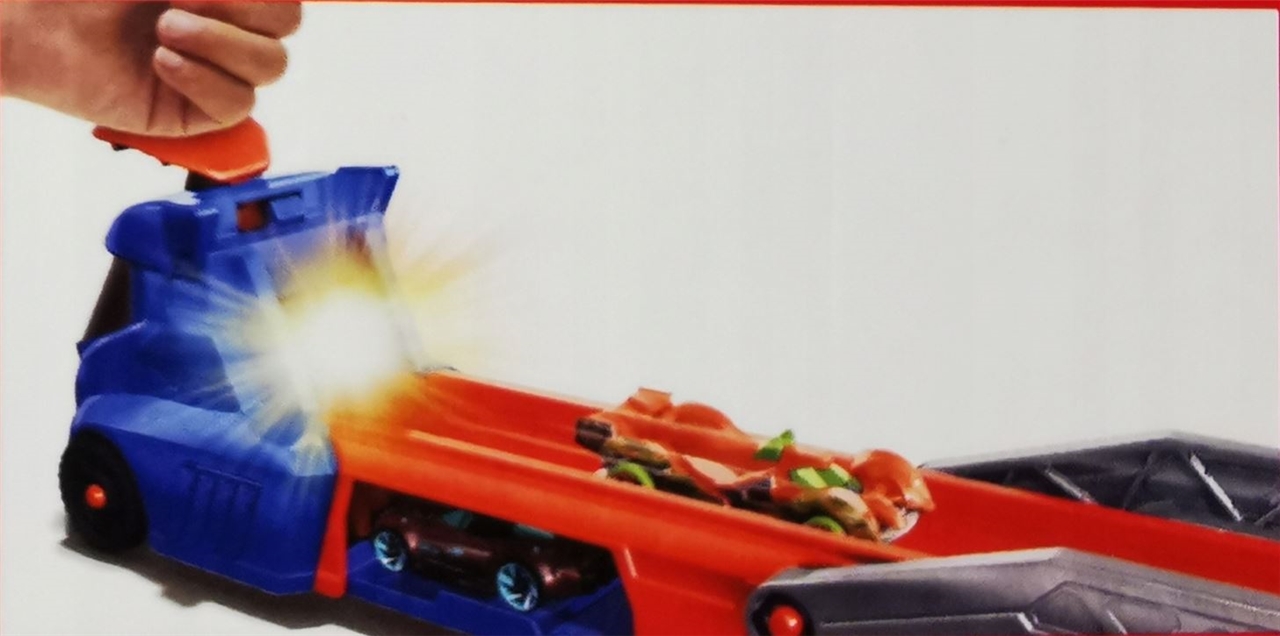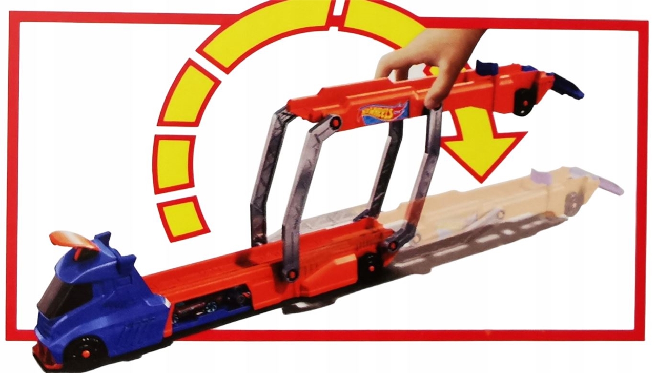 Zestaw zawiera: Speed Track Transporter + 1 samochodzik Hot Wheels.