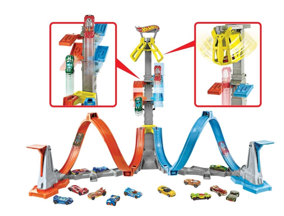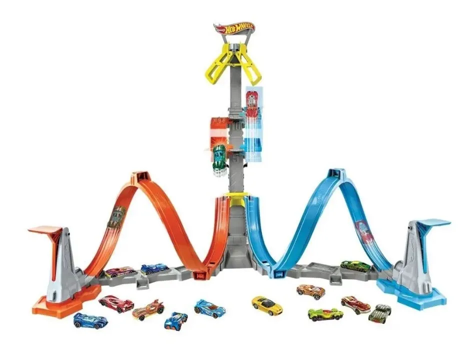 Zestaw zawiera adrenalinową pętlę, która przetestuje prędkość i stabilność Twojego autka oraz mechanizm wyrzucający, który wysyła samochody na kolejny tor z maksymalną siłą.