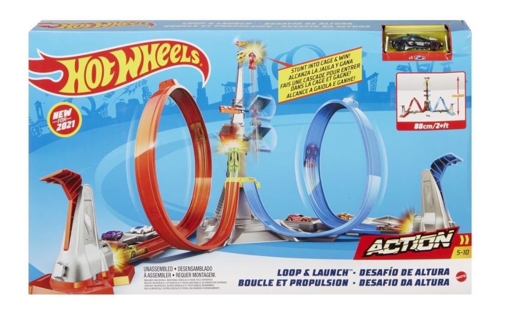 Zawartość opakowania: Pętla, mechanizm wyrzucający, 1 autko Hot Wheels.