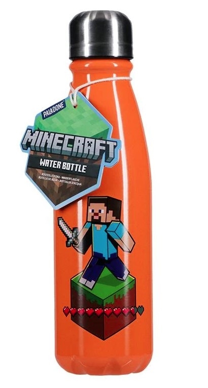 Z tą butelką na wodę z Minecraft będziesz nawodniony podczas swojej kolejnej przygody. Wielokrotnego użytku aluminiowa butelka na wodę o pojemności 600 ml jest dostarczana z zakręcanym wieczkiem.