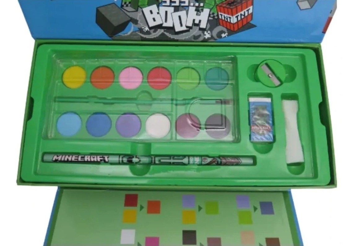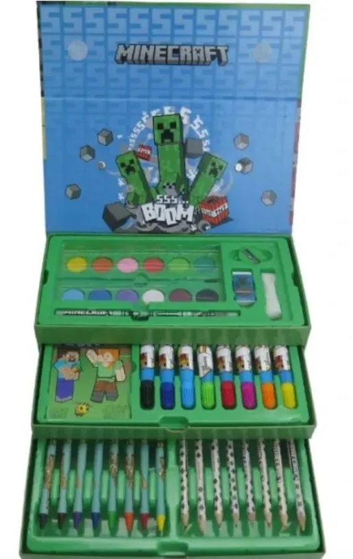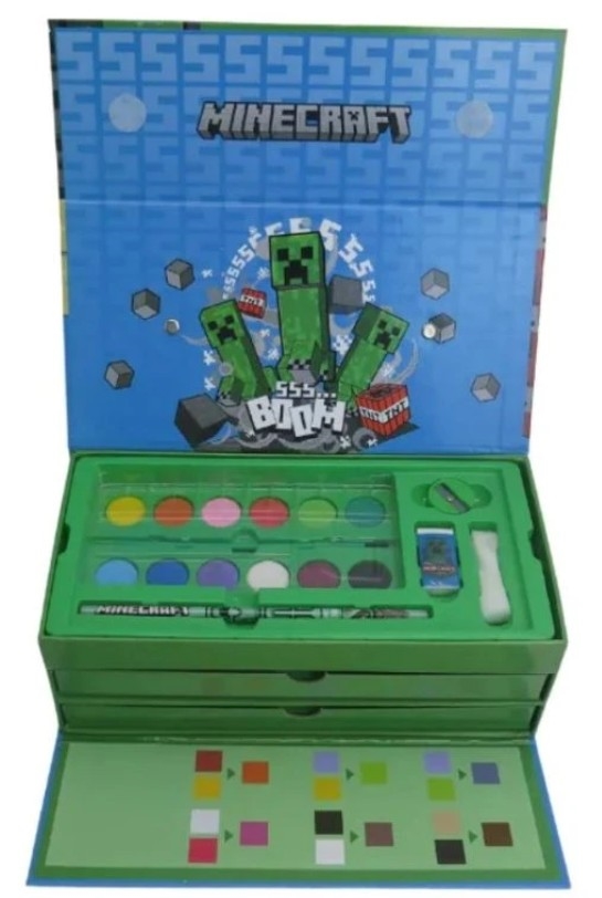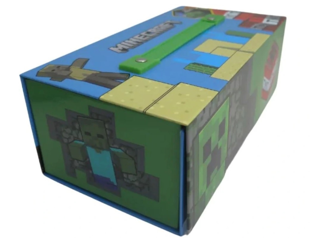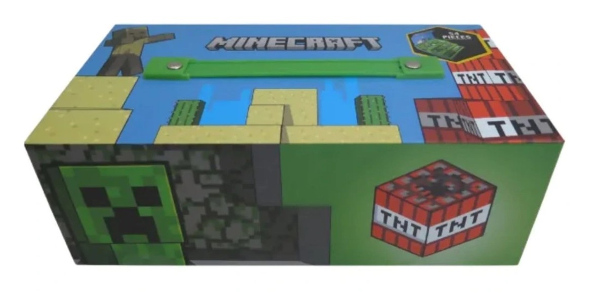 Kreatywny kuferek z grafiką wybuchowego Creepera i bomby TNT z gry komputerowej Minecraft.