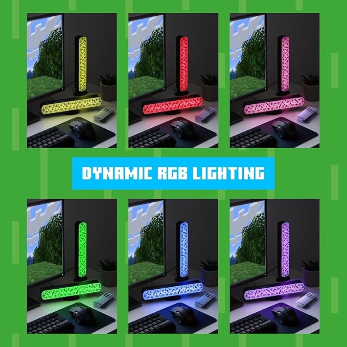 Wprowadź dynamiczne oświetlenie do swojego domu za pomocą tego zestawu dwóch lampek z motywem Minecraft. Stwórz swoją własną immersyjną atmosferę dla biurka, przestrzeni do gier lub zestawu telewizyjnego. Lampki posiadają tryby reakcji na muzykę, płynne przejścia kolorów i wybór kolorów.