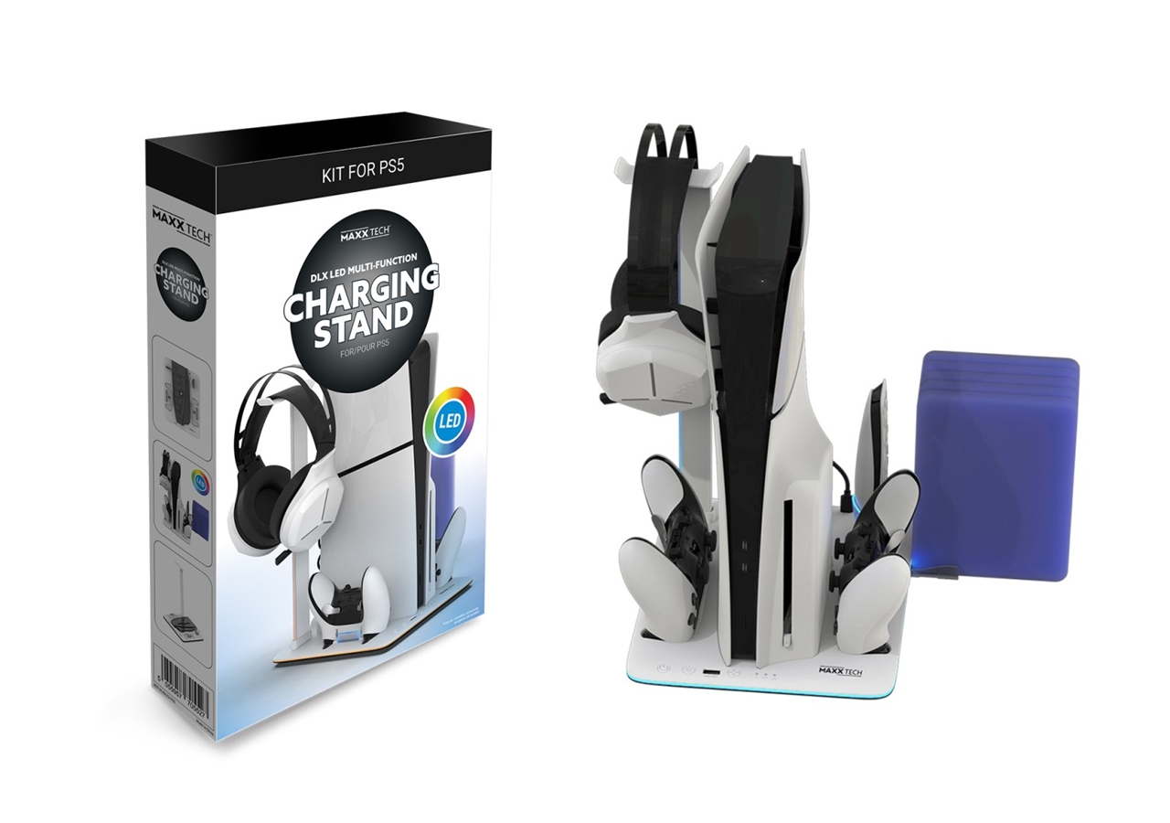 Usprawnij swoje doświadczenia z gry dzięki tej stacji ładującej i stojakowi do PS5, który zapewnia większy komfort i lepszą organizację miejsca do grania.