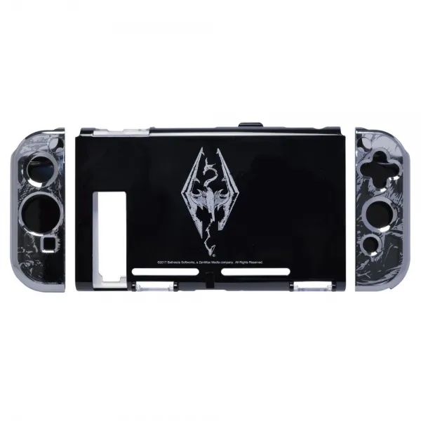 Ten 3-częściowy pokrowiec na Nintendo Switch naśladuje wygląd zużytej metalowej zbroi z The Elder Scrolls i zawiera grafikę ze Skyrim. Kontrolery Joy-Con można wyjąć z konsoli bez zdejmowania pokrowca.