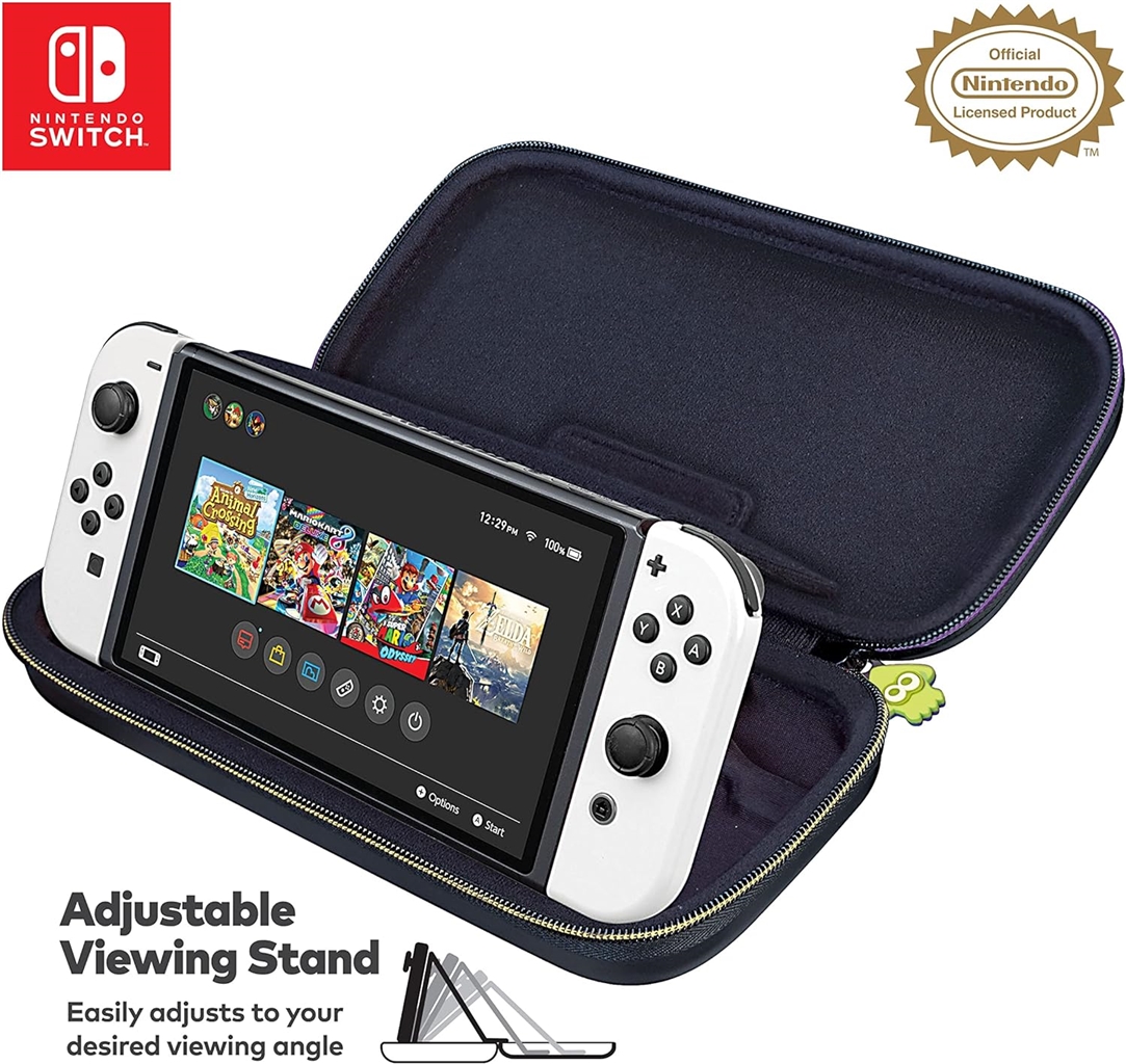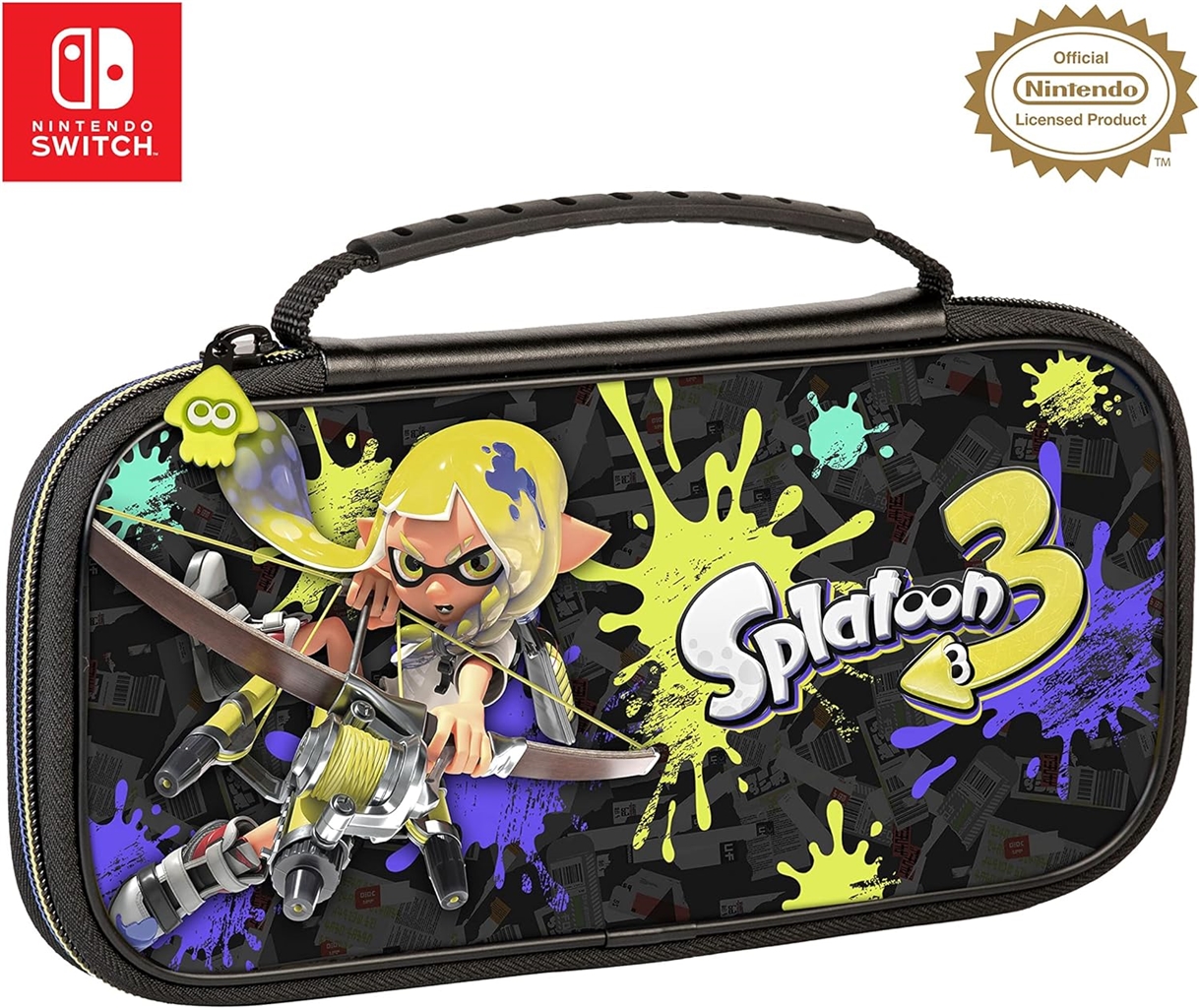 Luksusowe etui podróżne z motywem Splatoon 3 dla Nintendo Switch pozwala bezpiecznie zabrać konsolę Nintendo Switch ze sobą. Zabierz swoją konsolę Nintendo Switch Lite i model OLED ze sobą wszędzie!