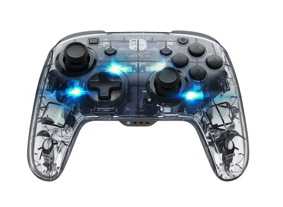 PDP to elegancki przewodowy kontroler do konsoli Nintendo Switch, który charakteryzuje się nowoczesnym wzornictwem z pryzmatycznym podświetleniem LED, długim czasem gry do 20 godzin, gniazdem słuchawkowym (jack 3,5 mm) i regulacją głośności bezpośrednio na padzie kierunkowym.