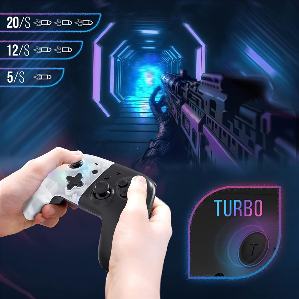 Łączność Bluetooth Kontroler Oniverse dla Nintendo Switch oferuje podwójną łączność: bezprzewodową przez Bluetooth do 10 metrów i przewodową przez kabel o długości 50 cm. Graj swobodnie lub wybierz stabilne i szybkie połączenie.