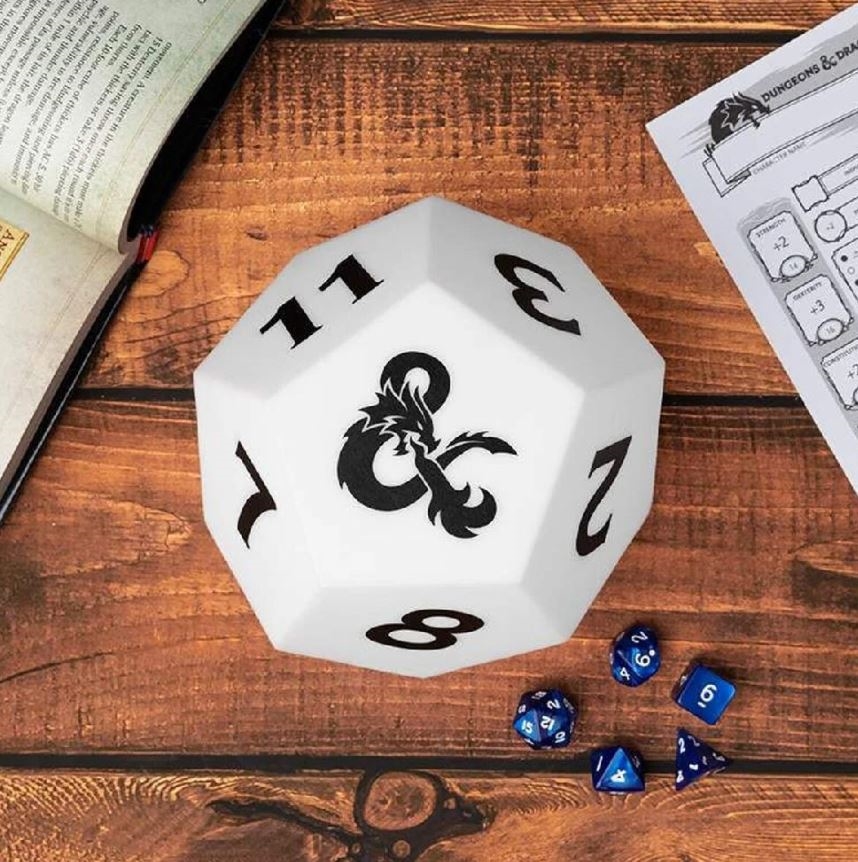 Kultowa lampa Dungeons and Dragons D12 to świetny prezent dla każdego gracza i fana Dungeons and Dragons. Spraw sobie stylową bezprzewodową lampę z fajnym motywem, która rozświetli Twój dom. Zasilana 2 bateriami AAA (brak w zestawie).