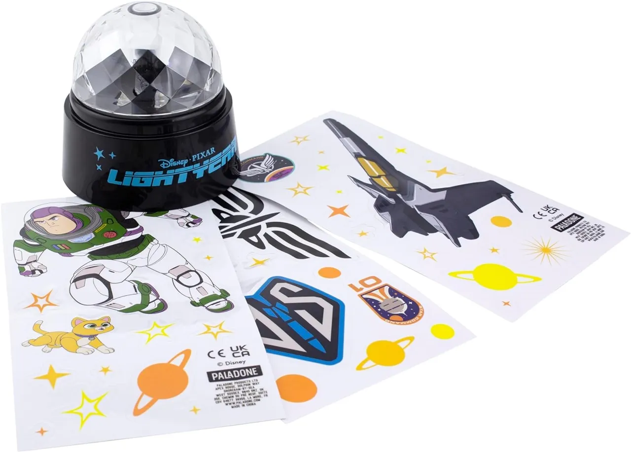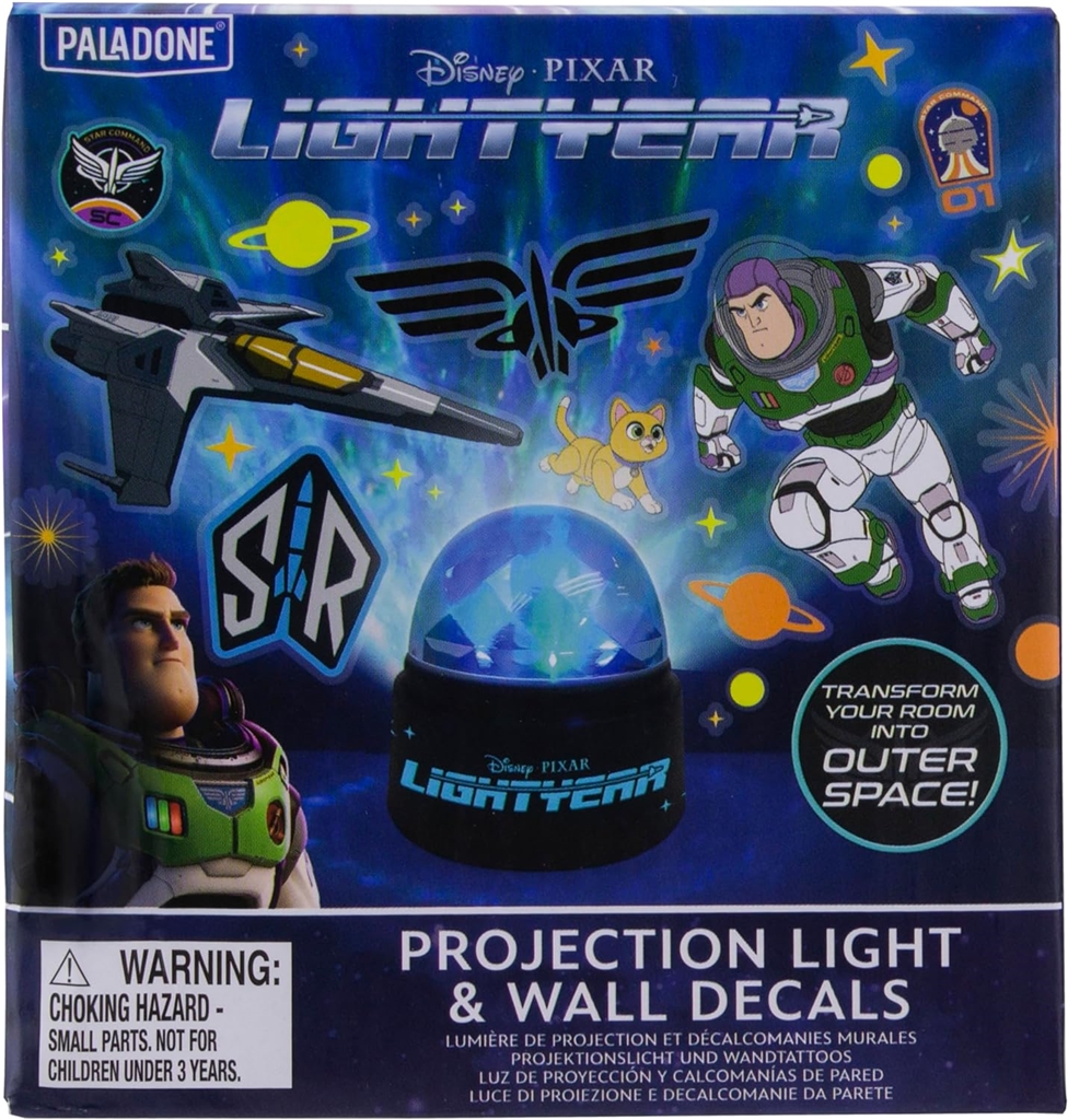 Przenieś swój pokój w nieskończoność dzięki temu niesamowitemu zestawowi lamp projekcyjnych i naklejek ściennych Buzz Astral. W połączeniu z najnowszym filmem Disney Pixar Astral, który przedstawia historię astronauty, na której oparta jest słynna zabawka Buzz, ten zestaw lamp projekcyjnych i naklejek ściennych może zmienić każdy pokój w scenę z kosmosu. Lampa projekcyjna emituje wiązki niebieskiego światła. Naklejki ścienne uzupełniają obraz i zawierają naklejki z Buzzem, jego statkiem, planetami i nie tylko - przyklej je w całym pokoju i wyrusz na własną przygodę razem z Buzzem. Naklejki można łatwo naklejać i zdejmować, dzięki czemu można dowolnie zmieniać wygląd pokoju bez pozostawiania nieestetycznych śladów.