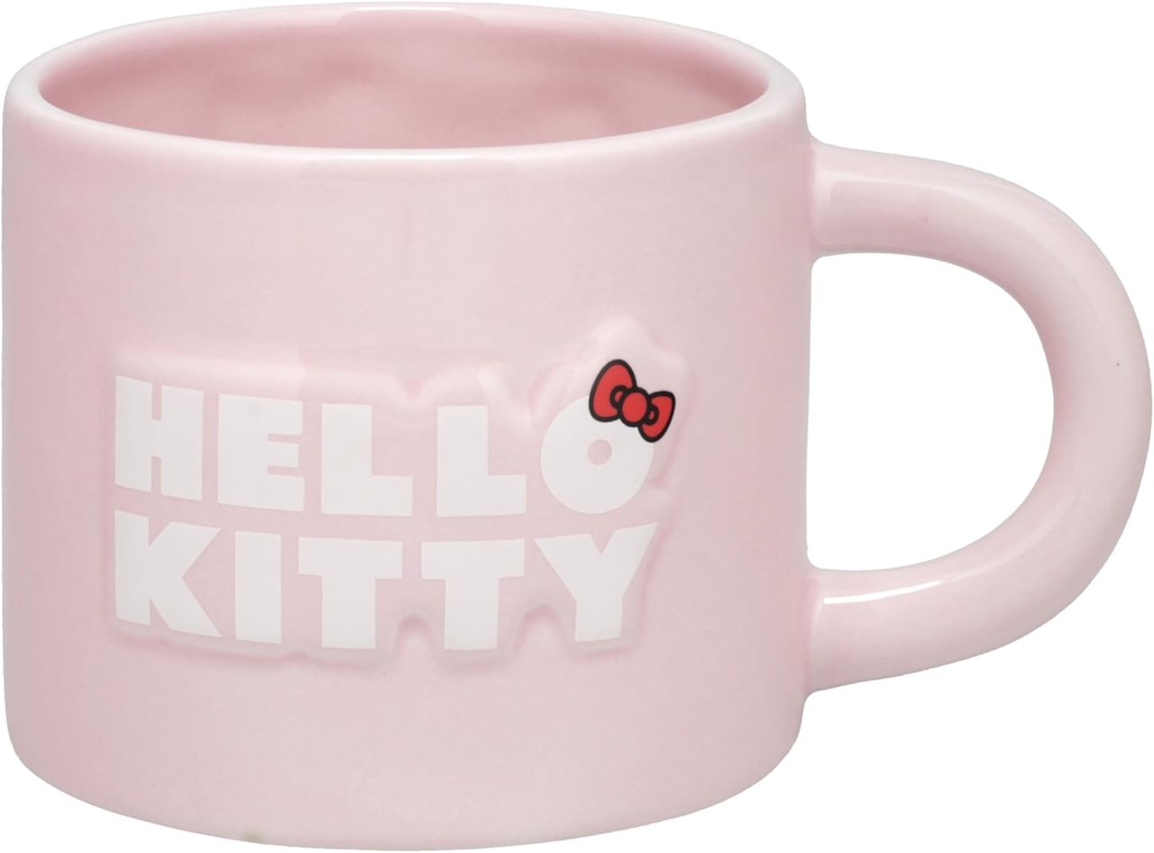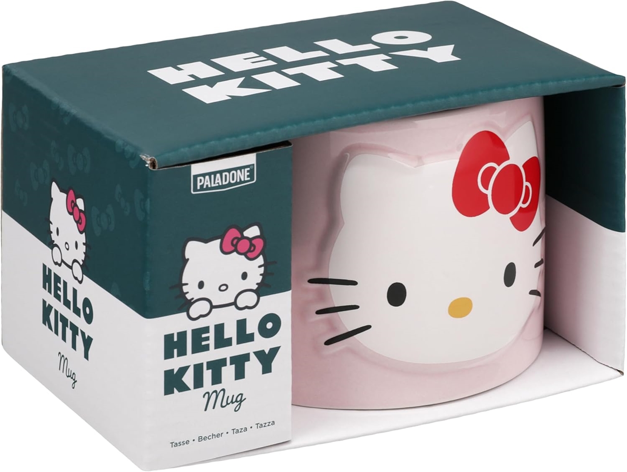 Duży ceramiczny kubek o pojemności 400 ml ma delikatny pastelowy różowy kolor, który doda Twoim przerwom na kawę kojący odcień. Kubek z wypukłymi detalami Hello Kitty z jednej strony i odpowiadającym logo z drugiej doda każdemu łyczkowi charakteru. Jest idealny do gorących napojów i doskonałym towarzyszem do pracy, do domu lub podczas maratonów filmowych. Kubek Hello Kitty to niezbędny element kuchennej szafki każdego fana Sanrio!