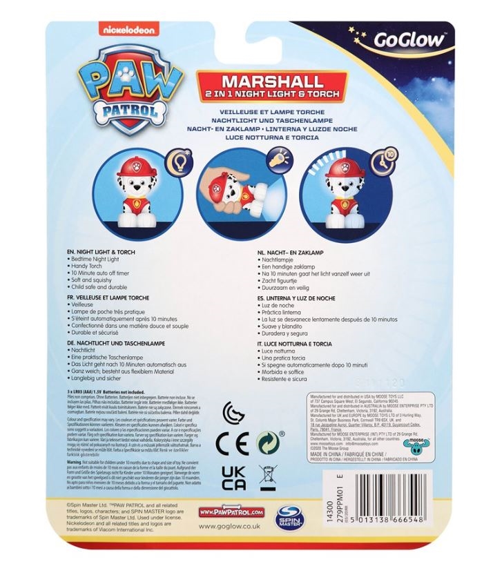 Lampka nocna i latarka Paw Patrol dla dzieci. Marshall z Paw Patrol to idealny towarzysz na dobranoc.